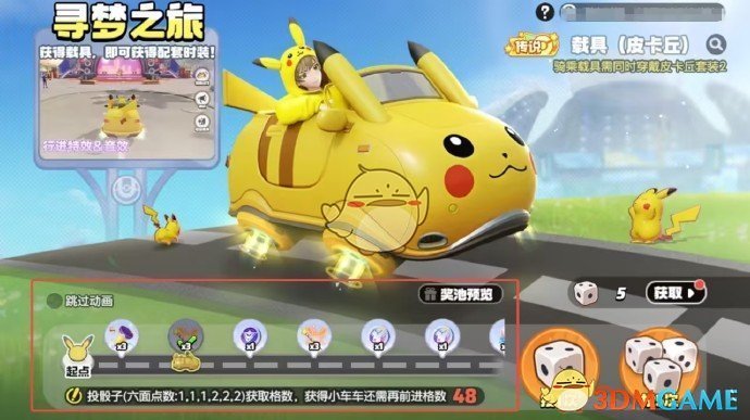 成功抵达终点后,即可获得【载具(皮卡丘)】及同款配套载具服【皮卡丘套装2】,萌气十足,电力满满的载具(皮卡丘)伴你出行。