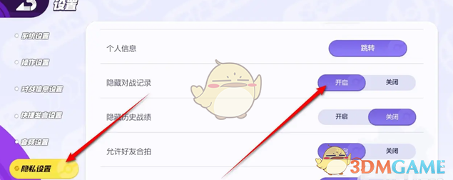答:前往设置功能,找到隐私功能,点击将对战记录隐藏即可