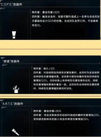 四件套:触发合击时,技能可额外造成上一名参与合击的友方基础攻击力120%的伤害,合击的队友死亡时,不会继承攻击力。