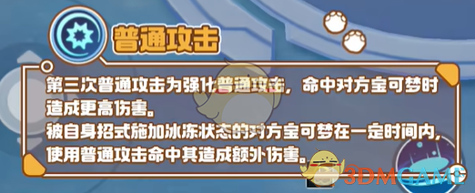 被自身招式施加冰冻状态的对方宝可梦在一定时间内,使用普通攻击命中其造成额外伤害。