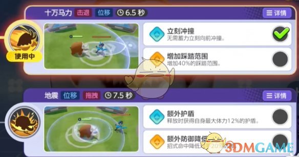 二技能:撞击 / 十万马力 / 地震