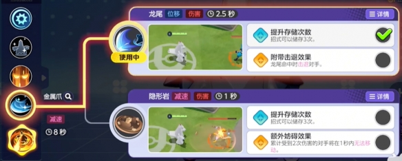二技能:金属爪 / 龙尾 / 看隐形岩