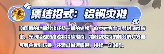随后在短时间内使用普通攻击或强化普通攻击时,会将身体的光芒集中于一点后释放。光芒所到达的距离会变得更长,并对所有接触到的对方宝可梦造成伤害。强化普通攻击会瞬间造成多次伤害,且每次伤害会附加对方宝可梦少许最大体力百分比伤害及较高的减速效果,持续一定时间。