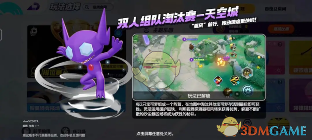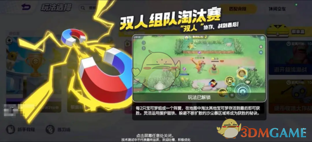 2、玩法简介:可以通过击败野生宝可梦获得能量球提升等级,还可以利用地图中的场景和道具,获得胜利。地图中沙尘暴会不断缩小地图,最后的幸存队伍为胜利队伍。