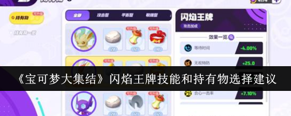宝可梦大集结闪焰王牌技能和持有物怎么选?宝可梦大集结里面很多人都想要玩下这个闪焰王牌了呢,那么对应的技能和持有物的选择非常的重要的,可以提升下实力了,今天就给大家推荐下方案了,那么大家要是好奇的话下面一起来看看吧!