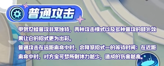 甲贺忍蛙普攻非常独特,两种攻击模式以及多种普攻的额外效果让会的招式更为出彩。