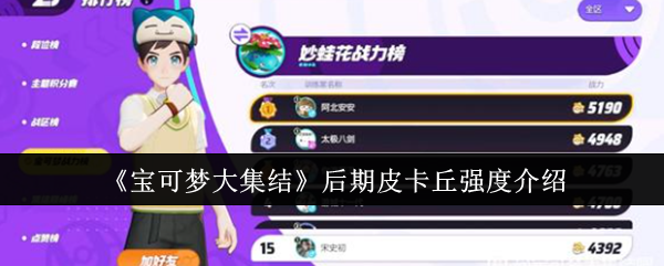 以上就是小编整理带来的宝可梦大集结后期皮卡丘强度介绍,更多相关游戏攻略,请关注手游网!