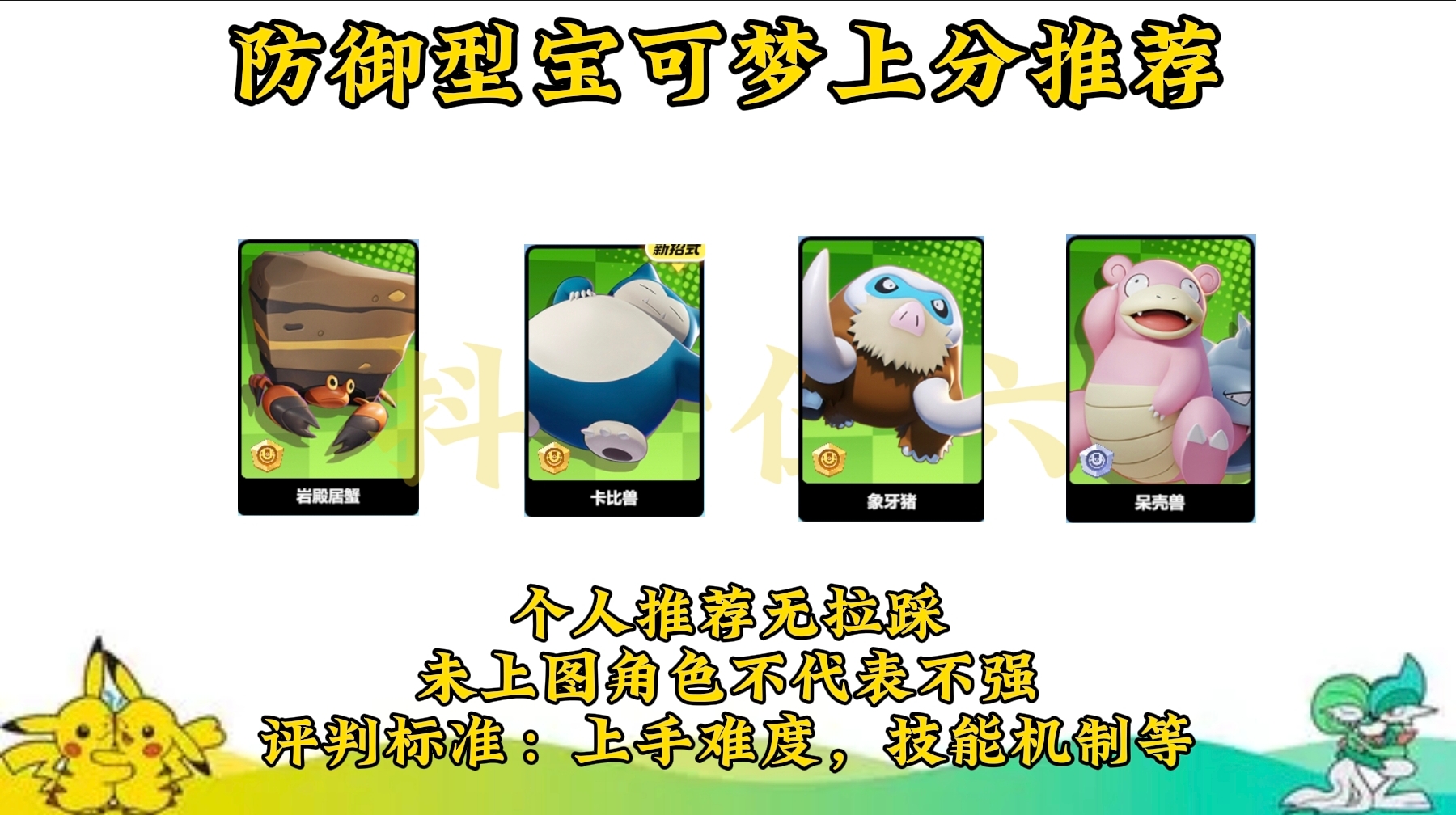 防御型宝可梦在控制的控制还能有一些伤害,我个人比较喜欢卡比兽。