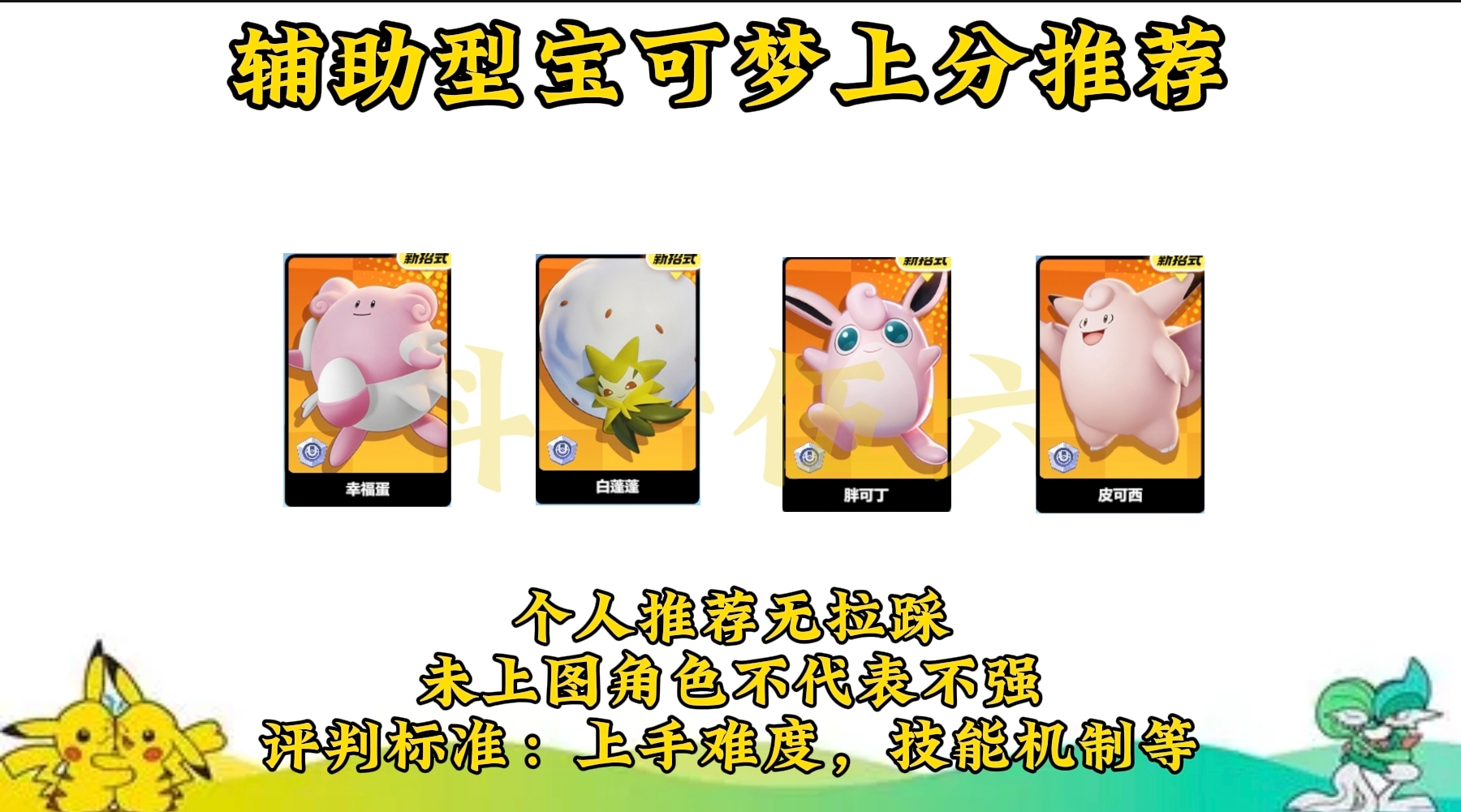 辅助型我只推荐偏向纯辅助,加血的宝可梦,比如皮可西。