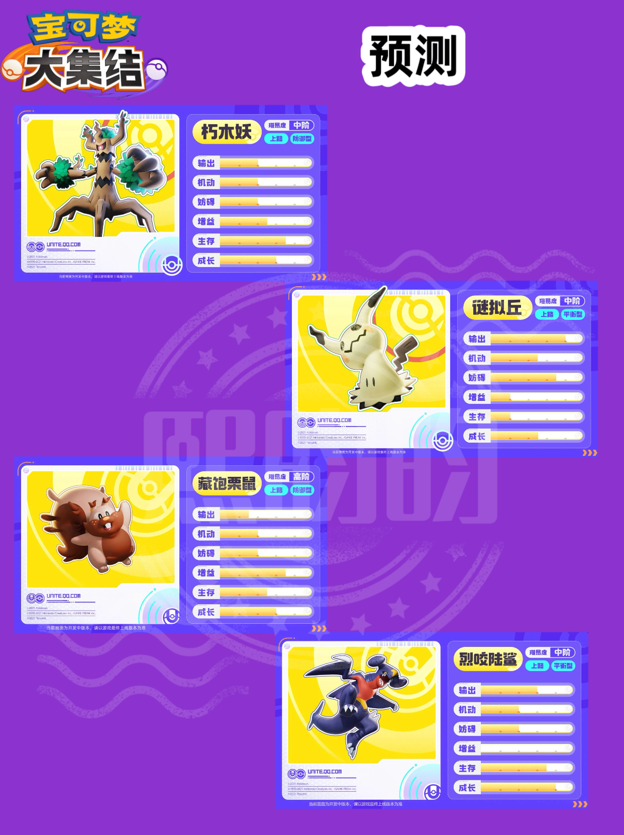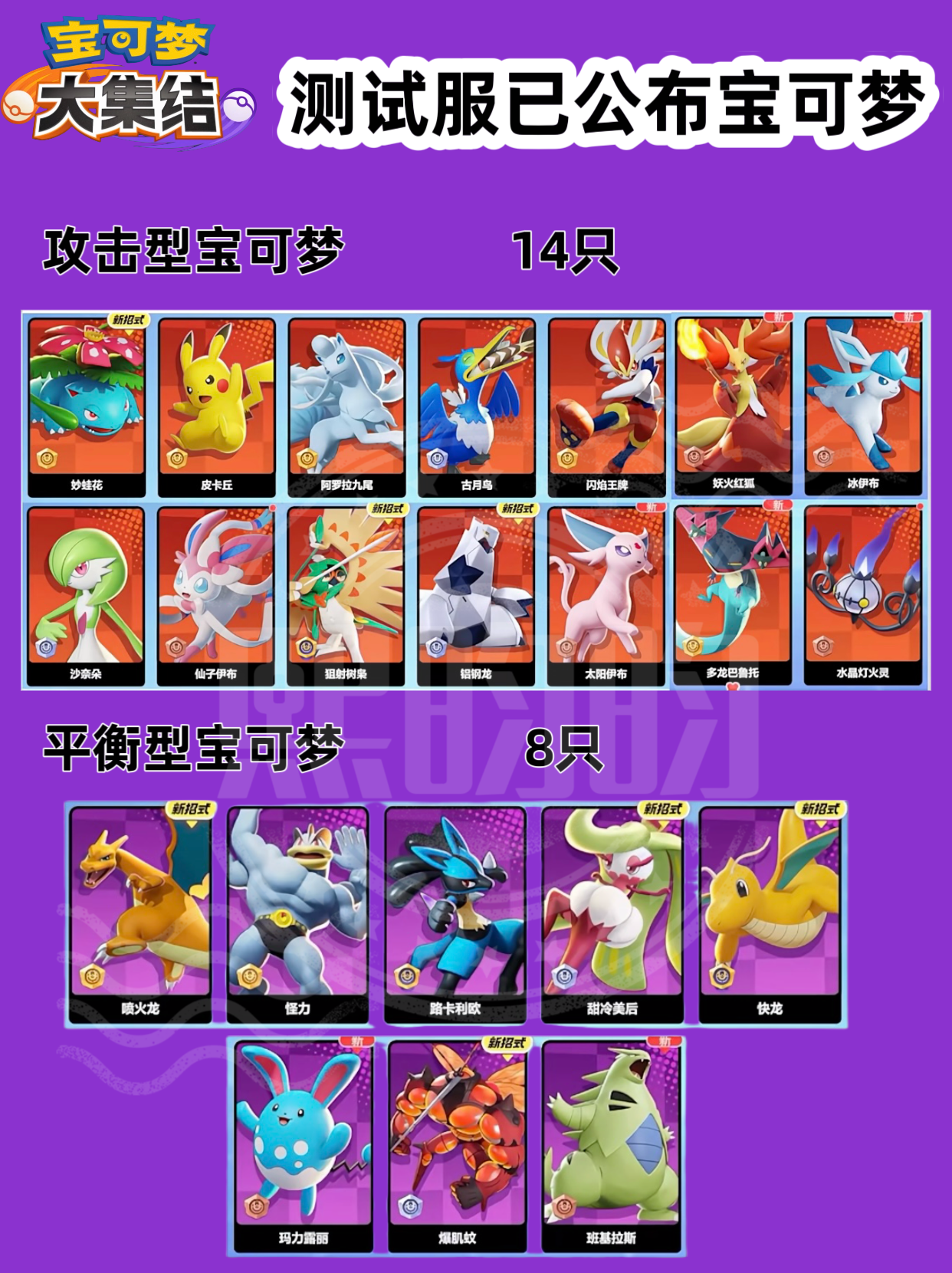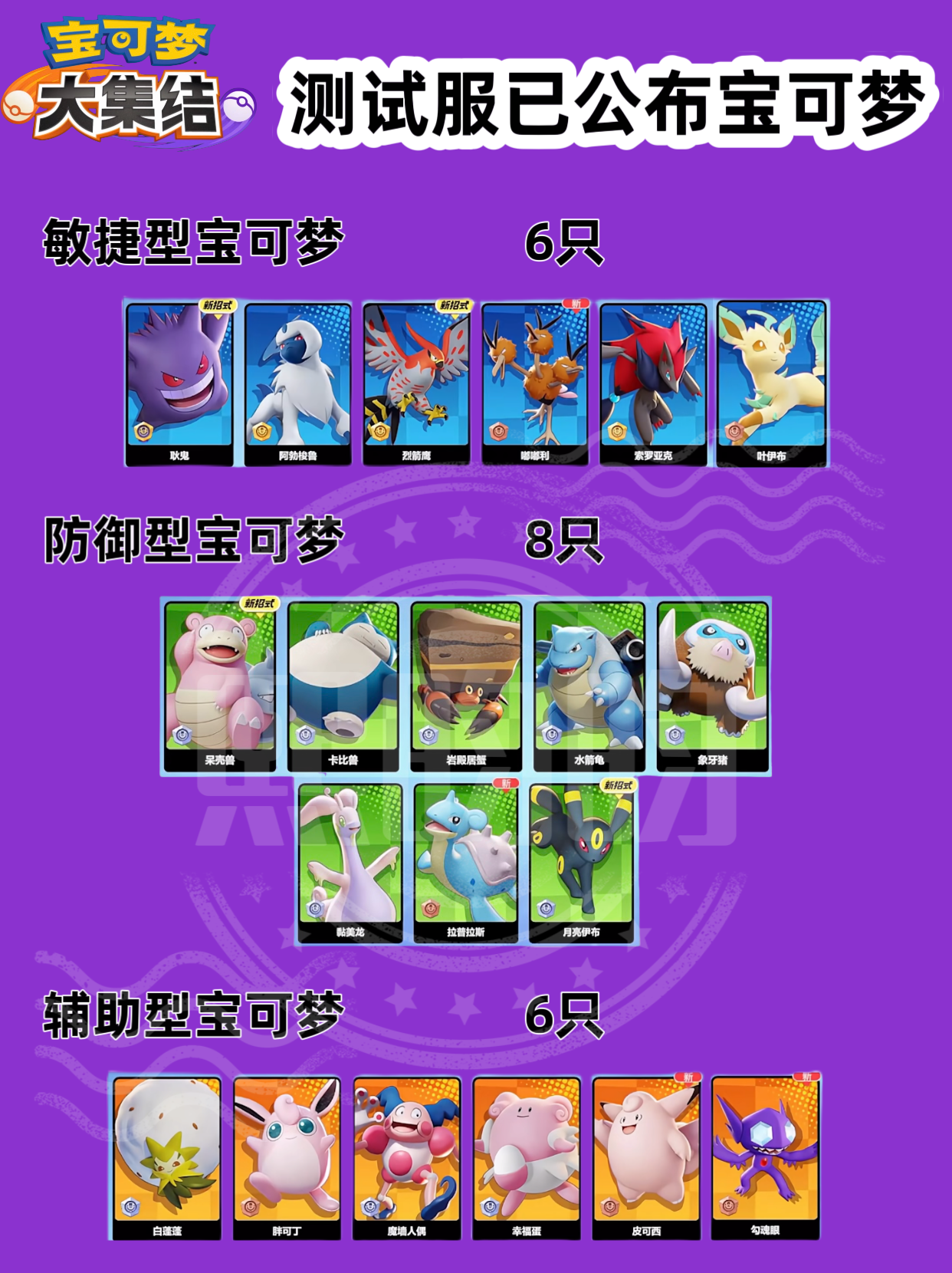 在宝可梦大集结中,宝可梦各有不同的特色,因为移除了属性克制,将其归类为攻击型、敏捷型、平衡型、防御型、辅助型。下面是小编给大家带来的《宝可梦大集结》国服首版本48只宝可梦预览,感兴趣的小伙伴们一起来看看吧。