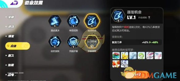 2、推荐二:连发机会,连续两次释放同个招式后,就会提高再次释放该技能的几率。