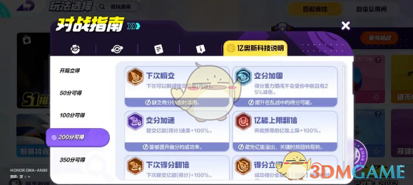 2、50分可得:普攻偷亿能、填满亿能或携带亿能保险器,前两个可以快速获得亿能,携带亿能保险器则能够提高角色的容错率。