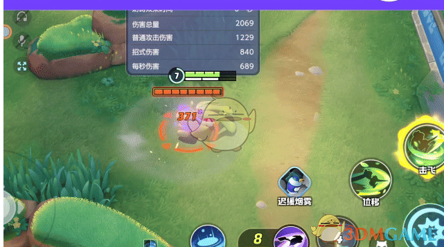 ⑤甜冷美后向指定方向进行飞踢,对接触到的对方宝可梦造成伤害并降低目标宝可梦攻击,持续1秒。飞踢时会产生一个减速区域,区域内的对方宝可梦会在1秒内降低移动速度,女王的威严强化效果:使用招式后自身获得护盾。