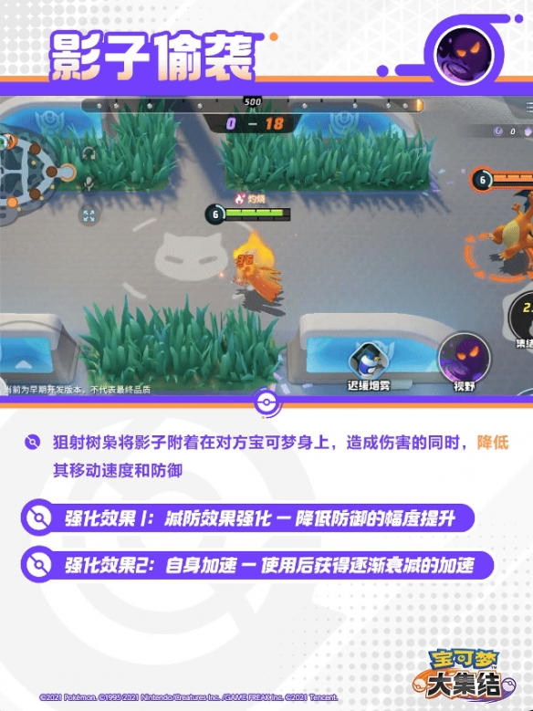 狙射树枭将影子附着在对方宝可梦身上,造成伤害的同时,降低其移动速度和防御