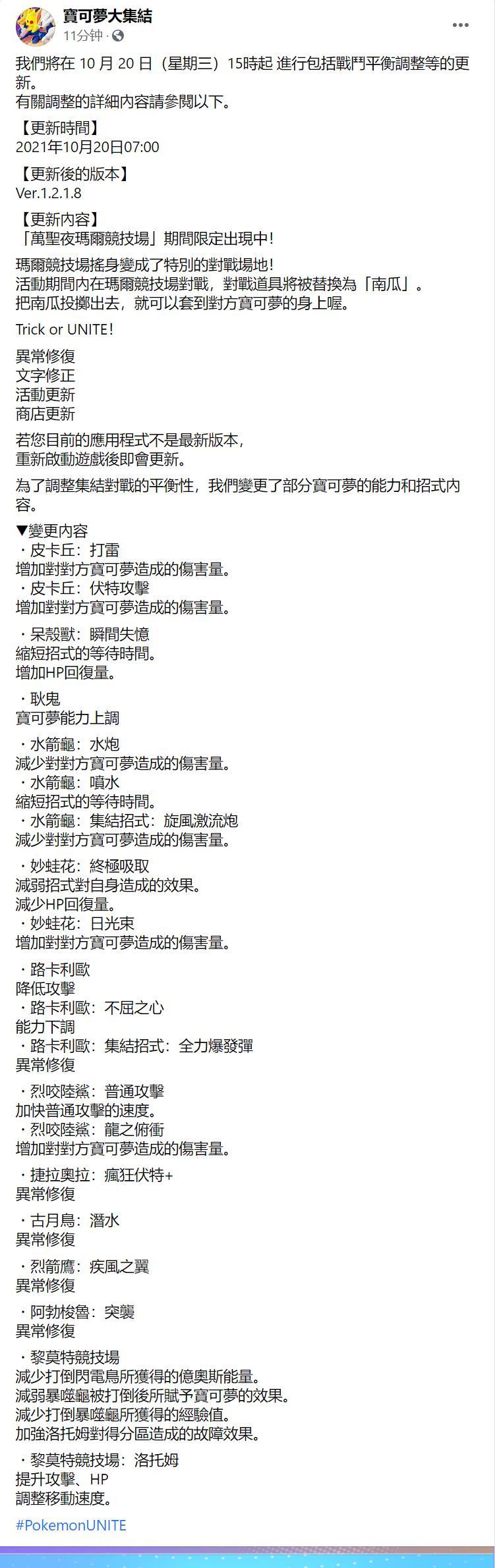 以上就是小编整理的关于《宝可梦大集结》10月20日平衡调整一览的全部内容,更多游戏攻略请持续关注手游网!