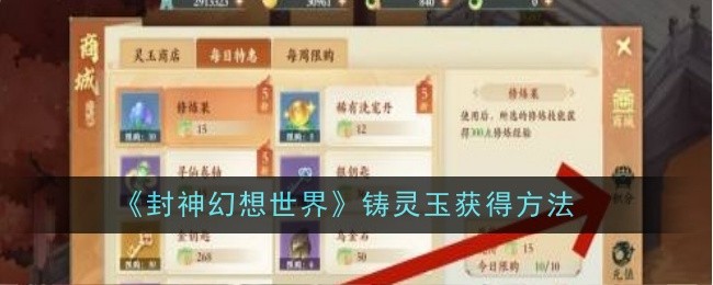 以上就是小编整理带来的《封神幻想世界》铸灵玉获得方法,更多相关游戏攻略,请关注这里下载站!