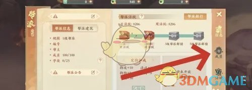 1、首先我们找到帮派进入,接着点击右侧的成员选项;