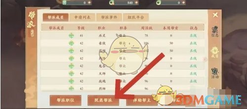 2、在帮派成员管理页面,点击下方的脱离帮派;