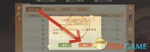3、最后点击确定,即可脱离帮派,退出当前所在帮派;