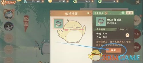答:点击装备选择宠物项圈,选择合适宠物项圈点击确定即可