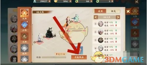 3、最后点击右下角的升级阵法,即可将阵法等级提升;