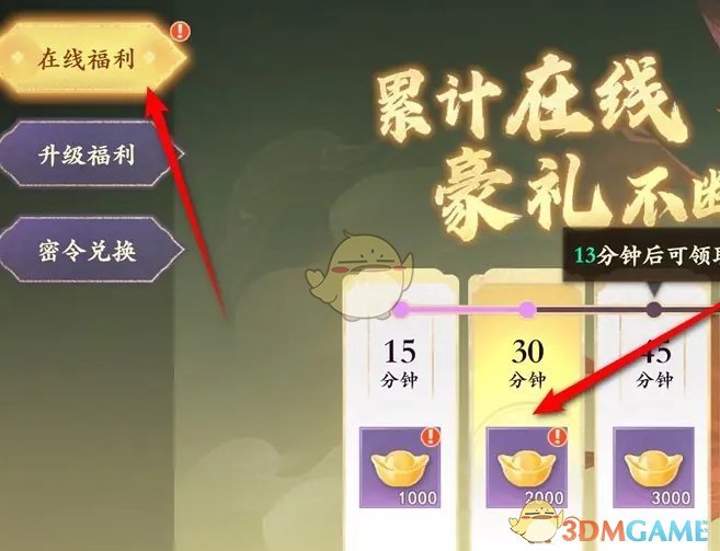 答:进入福利页面,点击在线福利即可一键领取奖励