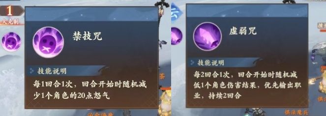 魔咒1:禁锢咒,每1回合1次,回合开始随机减少一个角色的1点法宝能量