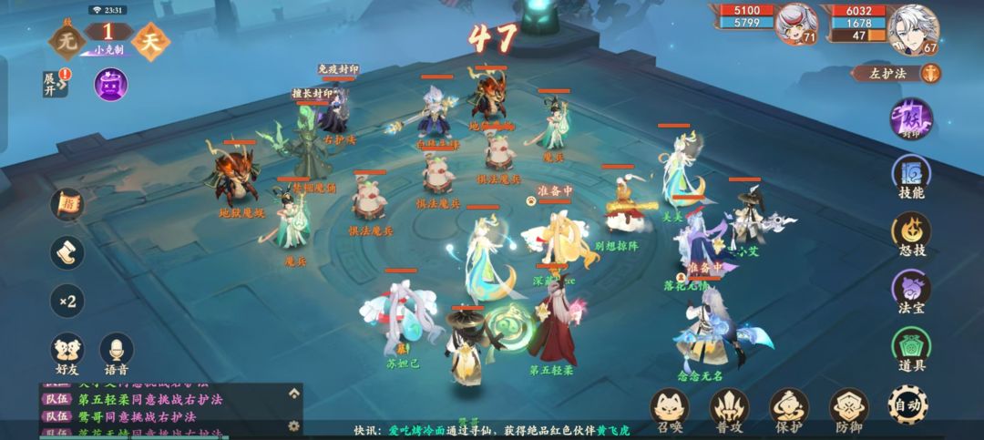 ——护法,这边不做太多的说明,难度不是很高,封封印,先主,先小怪都可以,最好指挥集火一起打,效率高一些,一般不会翻车。左护法主怪是物理输出,右护法主怪是治疗。