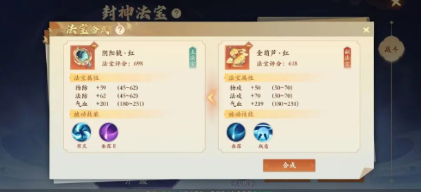 3、注意:玩家在合成时一定要看好主法宝的类型和属性。