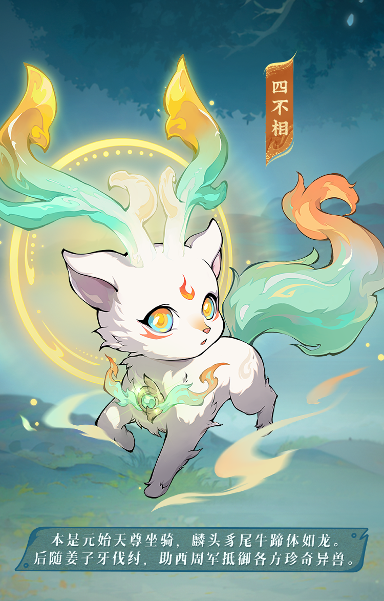 今天要介绍的是《封神幻想世界》四不相技能图鉴!四不相原本是元始天尊坐骑,后跟随姜子牙讨伐纣王,助西周大军抵御各方奇珍异兽,护姜子牙周全。在中国传统文化中,四不相也是祥瑞的象征。在游戏里,它是超强绝品法系神兽,拥有稳定的单体法攻技能,擅长打架清怪,能对怪物造成高额法伤,大大提高大人们的清怪效率!同时,智慧的四不相也懂得以战养战的策略,在使用技能击杀目标时,会给自身恢复一定气血。