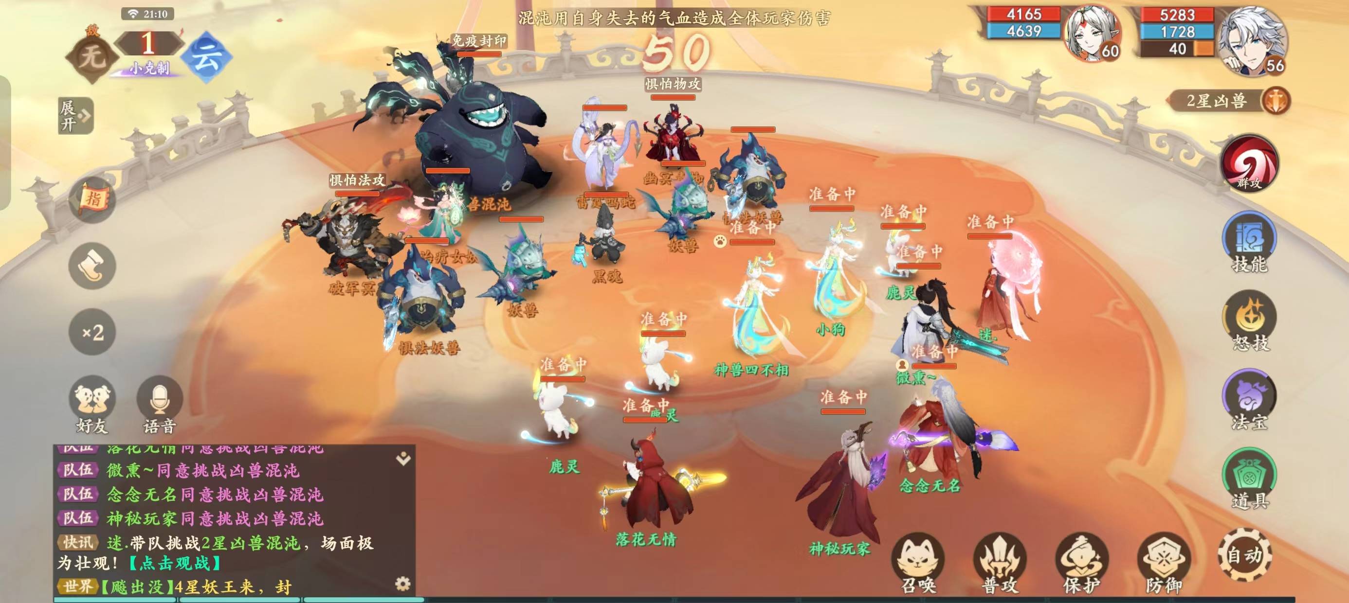 建议组队:1封,1奶,3输出(建议至少分别携带1个物理,1个法师,如果感觉扛不住可以带2个奶,打的会慢一些,但是会相对稳一些)