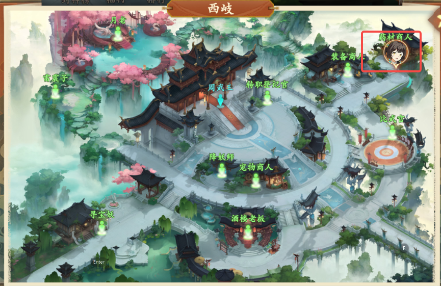 2、前往西岐地图所示地点与药材商人对话