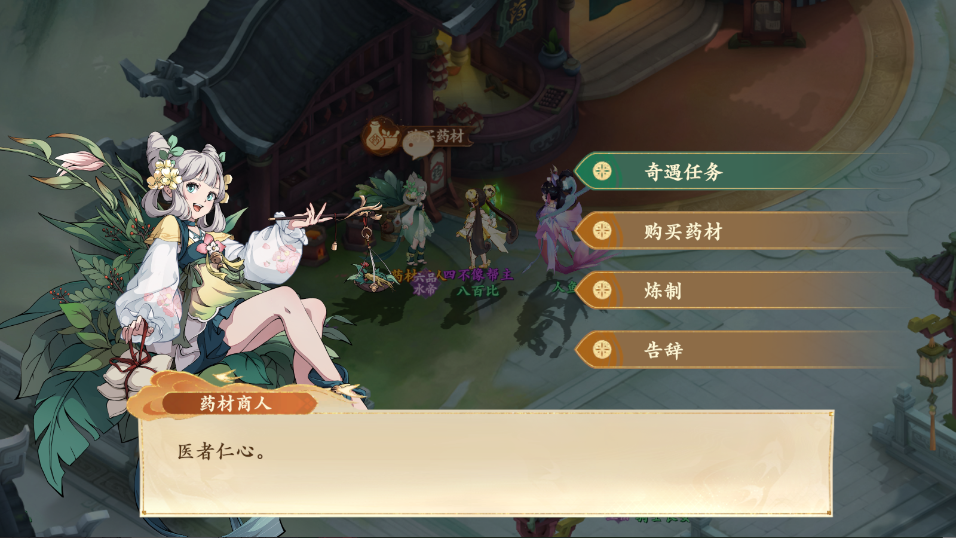 对话后得知需要红花正骨散,药材商人这里就有,点击购买药材,默认第一个就是,点击购买就好