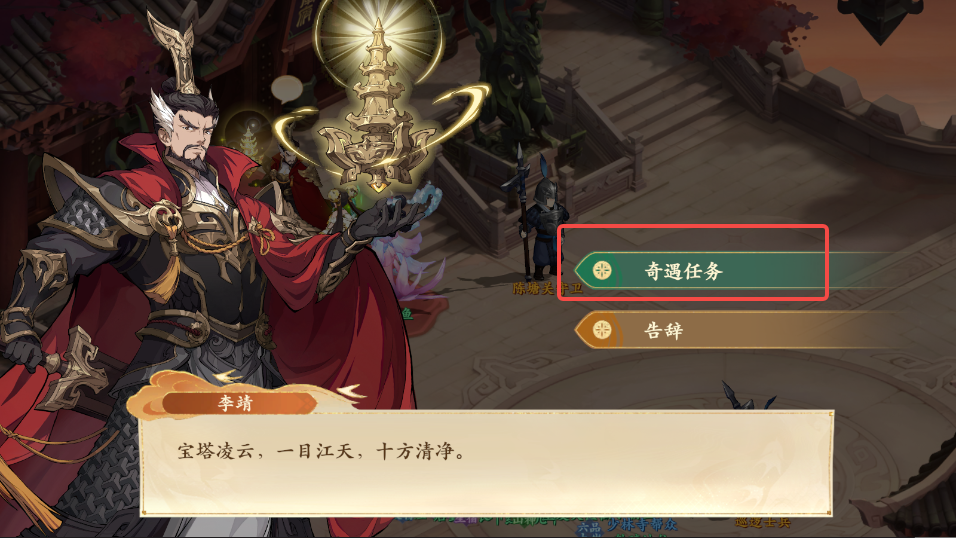 4、打开地图点击李靖寻路前往与李靖对话