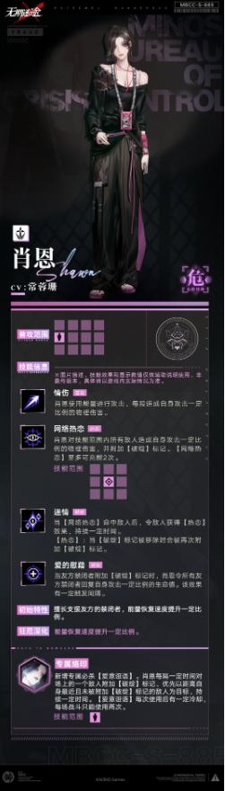 当友方禁闭者附加【破绽】标记时,肖恩令所有友方禁闭者回复自身攻击一定比例的生命值。该效果有一定触发间隔。