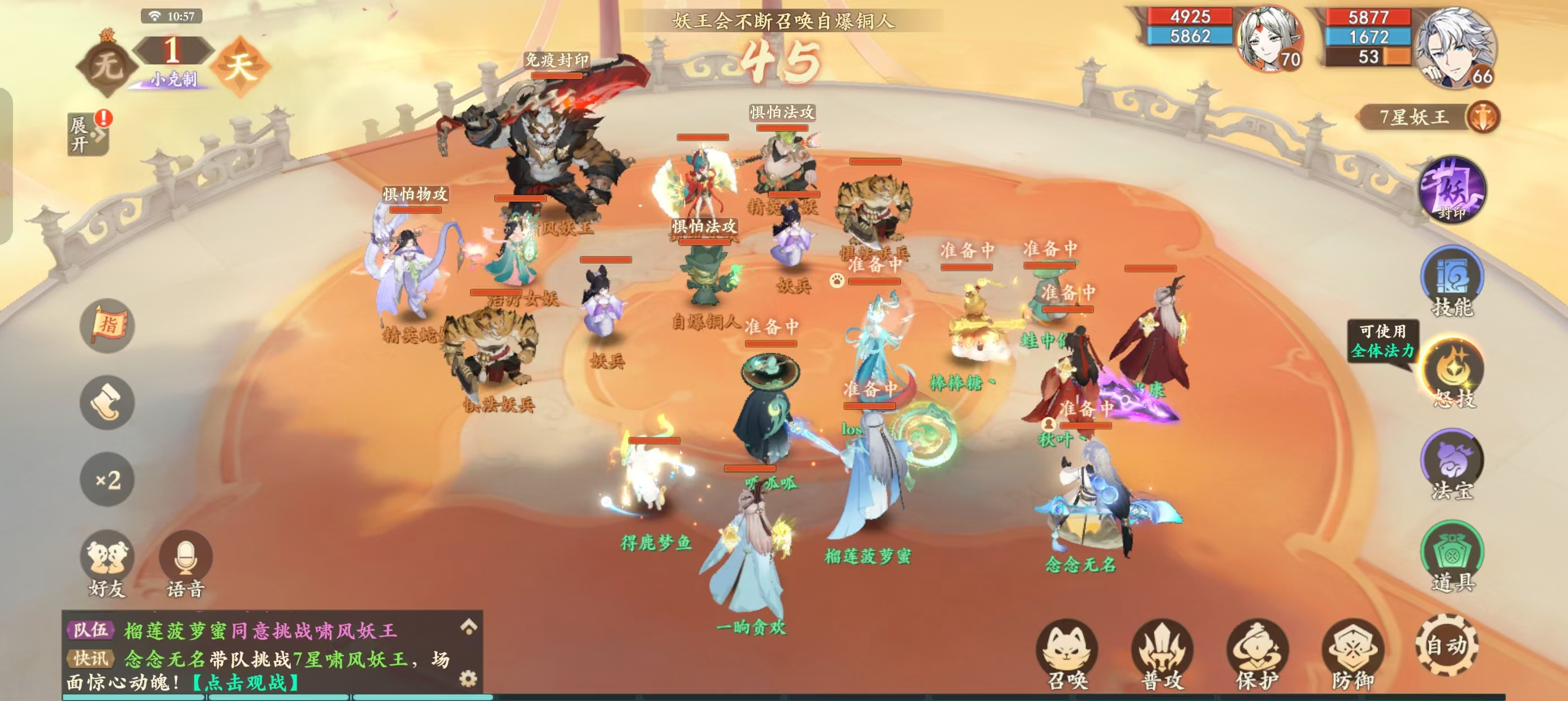 ②-1,如果铜人是惧法,法师+法宝宝清掉,物理单位打主
