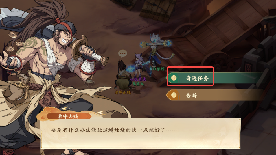 4、拾取后回去再次与看守山贼对话,上交拾取的油瓶