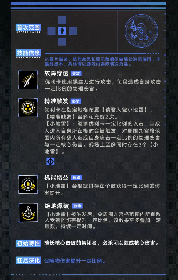 以上就是小编整理带来的《无期迷途》优利卡技能介绍一览攻略,更多相关游戏攻略,请关注手游网!