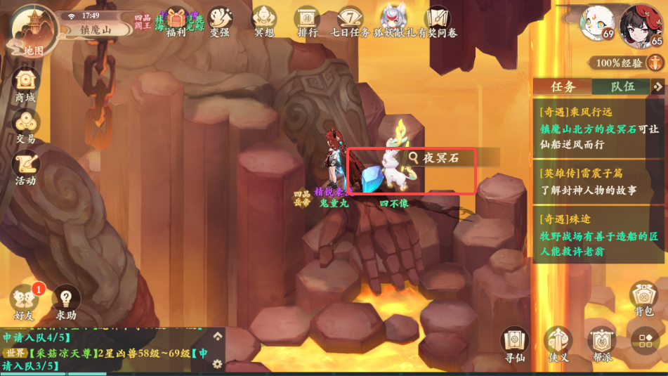 3、对话结束后获得云梦宝鉴,此时前往镇魔山如图所示处拾取夜冥石