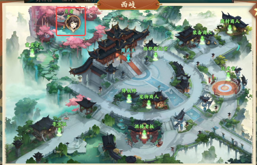4、对话结束后前往西岐如图所示月老处与月老对话,对话结束后获得比翼点翠钗