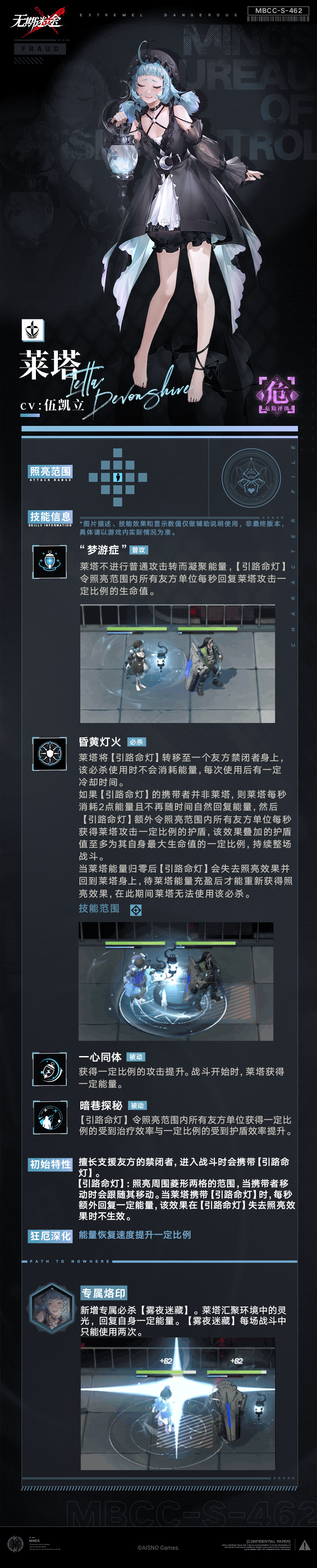 《无期迷途》莱塔是游戏中的一个新的角色,相信有玩家对这个角色还是比较感兴趣的,可能有玩家还不清楚这个角色的技能是什么,有什么效果,下面小编就给大家整理了具体的技能介绍,一起来看看吧!