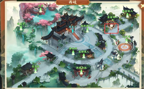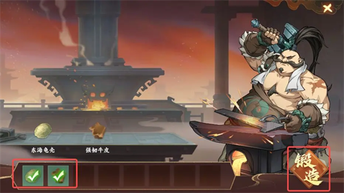 4、查看地图,返回西岐,通过点击装备商人定位并自动导航,与商人交谈并选择打造装备选项。将收集到的龟壳和牛皮作为材料投入,确认后开始锻造过程。