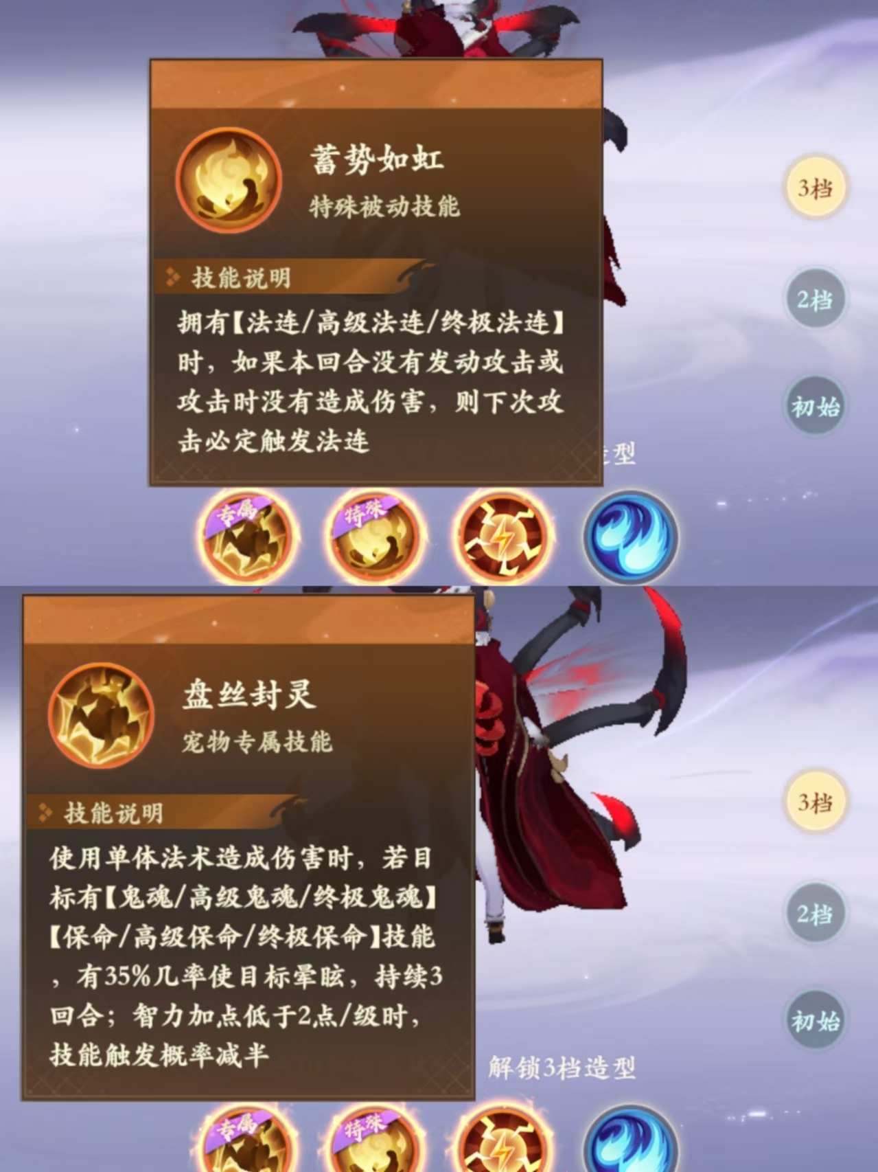 这个宝宝真的是太好看了,大家可以看看染色,真是美翻了,我认为这个宝宝非常适合做五力加点或者1敏的隐身敏攻宠,技能打高级敏捷 高级保命 高级物连 配合被动打速度低于自己的目标100%连击,第二次伤害还增伤10% 有猴子的玩家可以pass,如果正好你仓库里有一条炼血化气的灵饰,那这个宝宝非常适合培养了。
