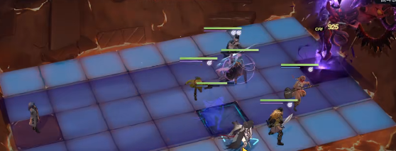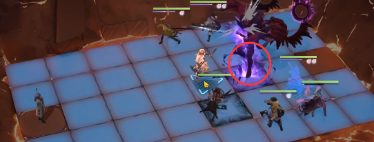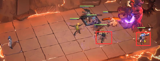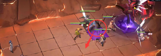 2、然后boss醒了之后会释放第一个技能,地上长手掌,注意移动离开紫色的格子。