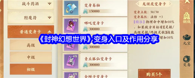 以上就是小编整理带来的《封神幻想世界》变身入口及作用分享,更多精彩内容,请点击关注这里下载站,小编将持续为您更新!