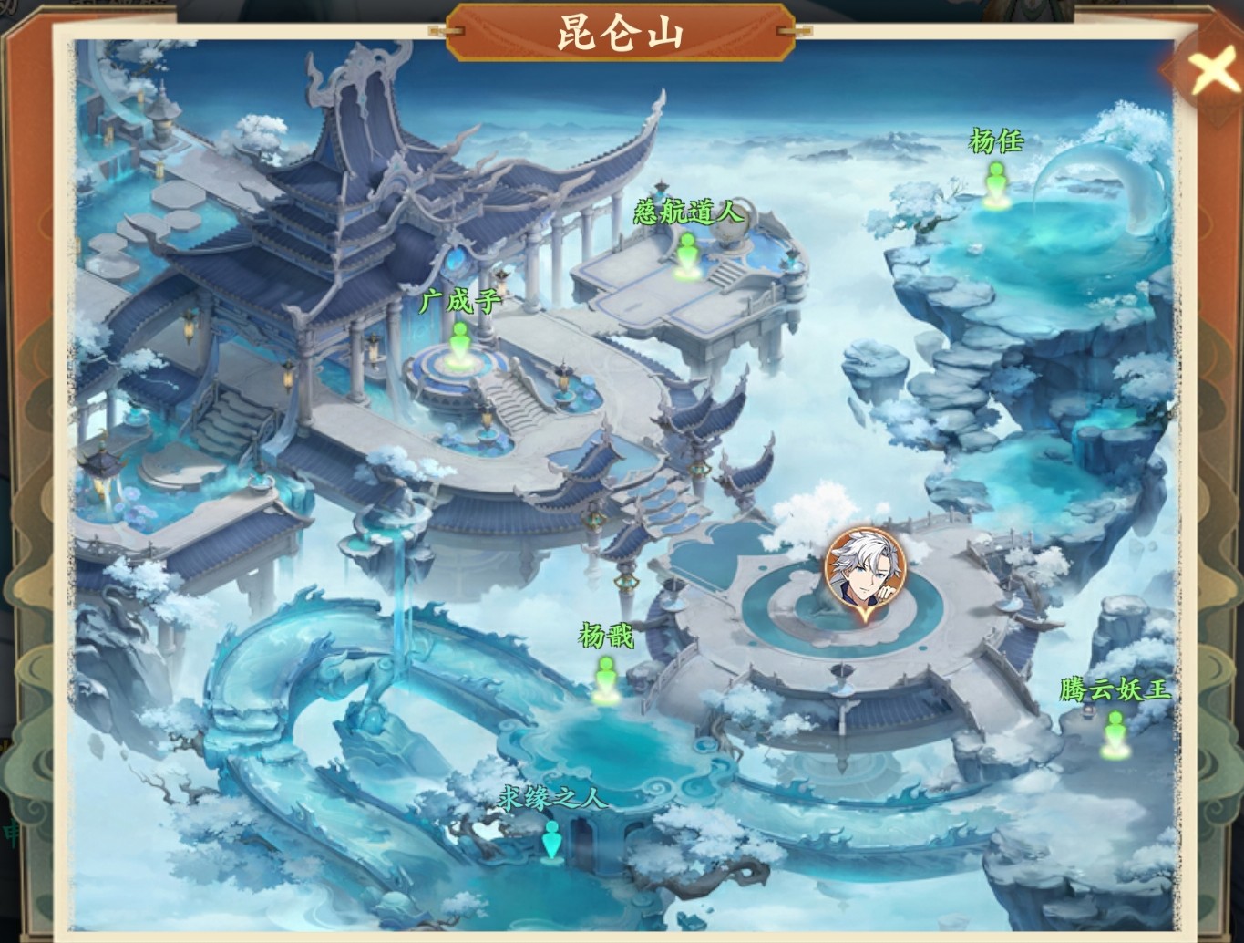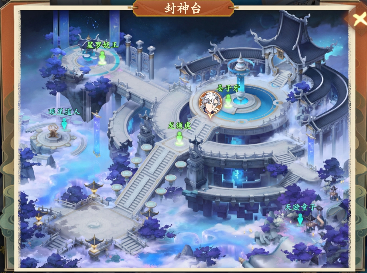 游戏的主城,日常大家经常会走到的区域,常驻NPC的功能性比较强,画风是非常中式的山水地图雷震子所在的台阶和月老所在的樱花树,都是非常适合拍照留念的