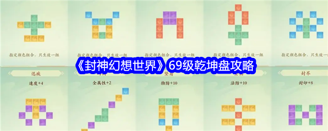 以上就是《封神幻想世界》69级乾坤盘攻略分享,69只有12个格子,没有太多的搭配花样,辅助搭配一个悟性剩下的根基补齐即可,输出可以简单粗暴直接纯色,悟性的图案效果强度并不是很强,期待79、89格子多了,有更多搭配效果吧,可以搭配2个悟性就有很多玩法了,大家努力升级吧!