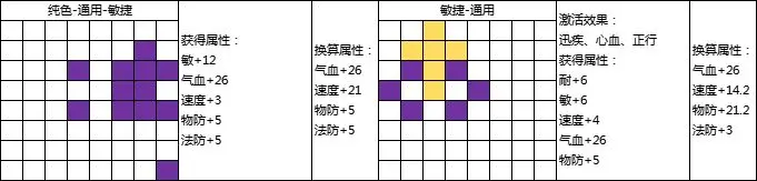 不论是物理,还是治疗,封印,都有补速度的时候,这边也提供两套速度的摆法,一套是纯色,一套是有悟性图案,大家自行选择,数值都标记好了,各取所需。