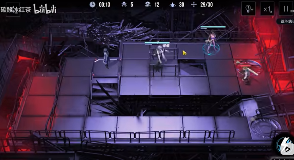 上方群怪出现后,把橡木匣挪回中间,白逸开启技能,从上到下破核(两行)