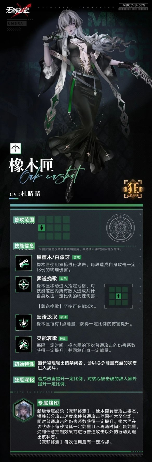 橡木匣是无期迷途即将上线的精准系禁闭者,许多小伙伴还不知道橡木匣的技能是什么样的,那么橡木匣的技能究竟是怎么样的呢?接下来小编就给大家带来了无期迷途橡木匣技能介绍,感兴趣的小伙伴不要错过无期迷途橡木匣的技能介绍哦。